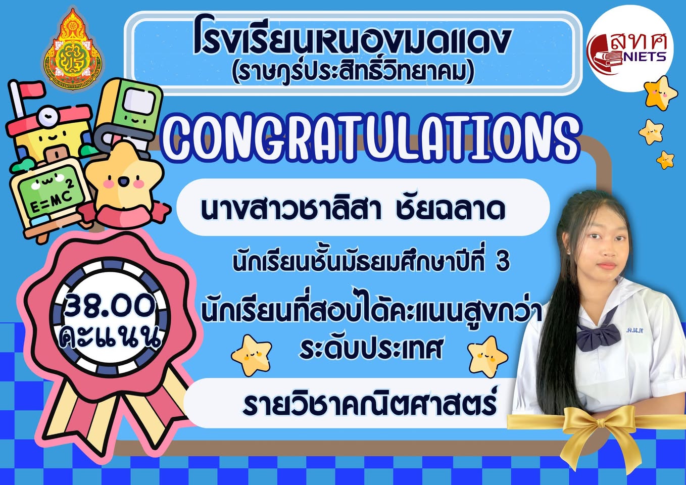 นักเรียนชั้นมัธยมศึกษาปีที่ 3 ที่ได้คะแนนสูงกว่าระดับประเทศ ในรายวิชาคณิตศาสตร์