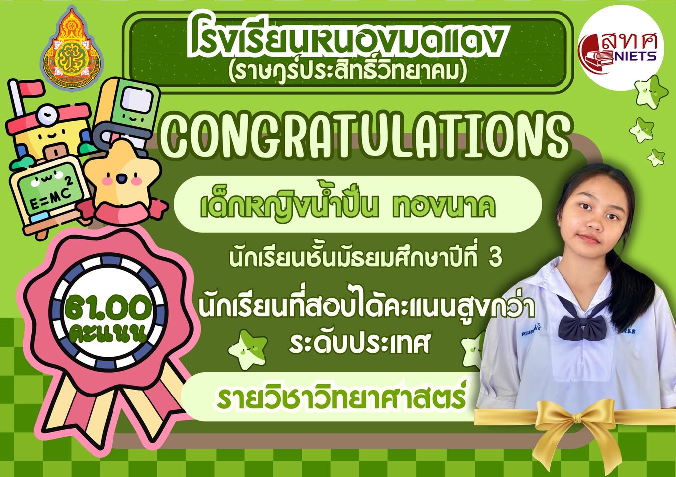 นักเรียนชั้นมัธยมศึกษาปีที่ 3 ที่ได้คะแนนสูงกว่าระดับประเทศ ในรายวิชาภาษาอังกฤษ